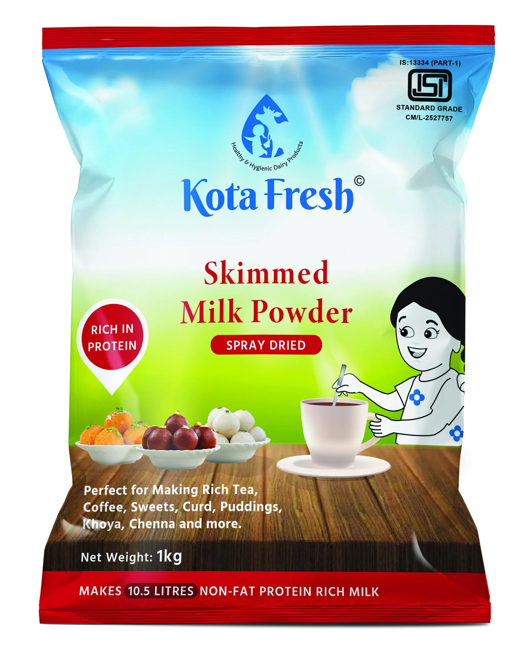Kota Fresh Skimmed Milk Powder is made from high-quality milk that has had the fat removed, providing a low-fat, protein-rich option.